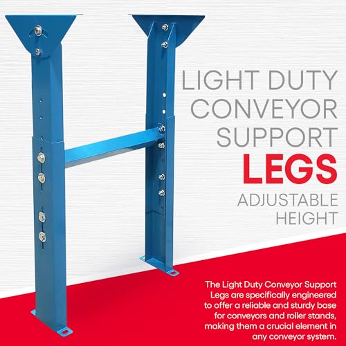 - High Load Capacity - Each leg set weighs 15 pounds, making them lightweight yet capable of providing substantial support to your conveyor system. Can support up to 600 pounds when secured to the floor, or 300 pounds without a floor connection.