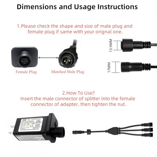 3 Way Lighting Splitter 1m 3.28ft 2Pin Quick Connect with with Male and Female Connectors for LED String Light, Desk Light, Decoration Light Installation (3 Way Splitter)