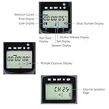 2 in 1 wired and wireless intervalometer, function both wired or wirelessly to better fit your particular setup Features specialized functionality such as self-timer, continuous shooting timer, long exposures timer, interval shooting timer and number of shoots timer Features a 2.4 GHz frequency along with a 328ft/100m range for maximum versatility and reliability Multiple time settings can be accessed from the transmitter's backlit LCD screen, such as the ability to set a number of shots from 1-999 or to infinitely take photos. The duration of an exposure can also be set all the way up to 99 hours 59 minutes and 59 seconds in one-second increments It is compatible with select Canon cameras: Canon EOS Rebel T7,T6,T5,T3,T8i,T7i,T7i,T6s,T6i,T5i,T4i,T3i,T2i,T1i,SL1,SL2,SL3,EOS 90D,80D,70D,77D,60D,60Da,EOS R,R6,R6 Mark II,R6 Mark III,R7,R8,R10,R50V,R100,RP,EOS M6 Mark II,M6,M5,Powershot G1X,G1X Mark II,G1X Mark III,G3X,G5X,SX70 HS,SX60 HS,SX50 HS