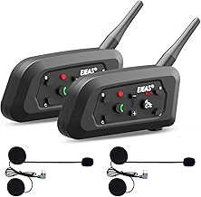 EJEAS Casco de Moto Bluetooth V6 Pro, Sistema de Comunicación Intercom de 2 Vías 1200M para Motocicleta de Esquí/ATV/Moto de Tierra/Fuera de Carretera para Casco de Cara Completa (Paquete de 2)