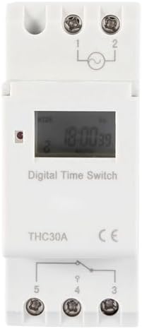 Walfront 30A Digital Timer Switch Programmable 7 Day Electronic Time Control 16 ON/Off Settings Screw/Rail Mounting (220V)