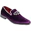 Fine grosgrain piping trims a sleek Venetian loafer cast in a fine velvet texture with high quality rhinestone buckle strap to add extra elegant to your outfit.