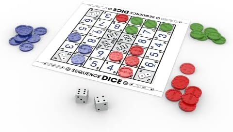 - Includes 1 Cloth Game Board, 2 Dice , 60 SEQUENCE Playing Chips, and Complete Instructions
