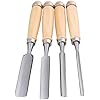 Material: carbon steel + solid wood Length: about 24CM Model: External type Body width: 7MM, 12MM, 15MM, 22MM Tip: Initially, you need to sharpen your own Application: woodworking, personal DIY Package including: 4*Wood Carving Hand Chisel Tool