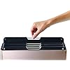 This stunning design features a slimline, stainless-steel case that keeps four large chopping boards beautifully organized and makes a real statement on the countertop. Each color-coded board has a knife-friendly, textured cutting surface on both sides and non-slip feet. They can be easily removed from the case due to the smart angled design and stainless-steel selecting bars. The case holds each board neatly apart, allowing air to circulate, and features a fingerprint-proof coating to make cleaning easy and non-slip feet on the base. Available in a range of premium colors.