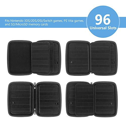 - Great storage capacity: Has 96 universal slots to hold Nintendo 3DS/2DS/DSi/Switch games, PS Vita games, and SD/MicroSD memory cards. Help to keep your games neat and organized.