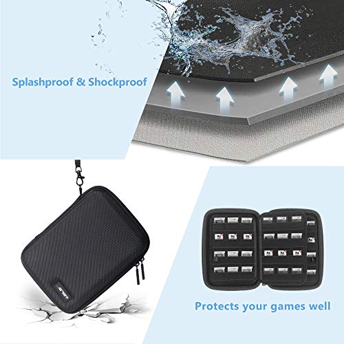 - Its hard outer shell, made of top-quality EVA, provides full protection against scratches, impacts, shocks, sunlight and dust, and keeps your games safe and protected.