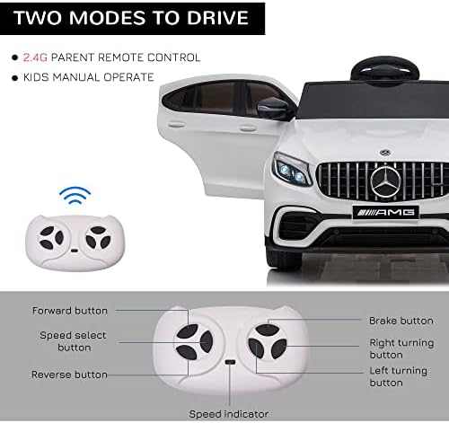 Coche de juguete Aosom Ride On de 12 V para niños con mando a distancia, Mercedes Benz AMG GLC63S Coupé, 2 velocidades, con MP3, luz eléctrica, bocina, suspensión, blanco