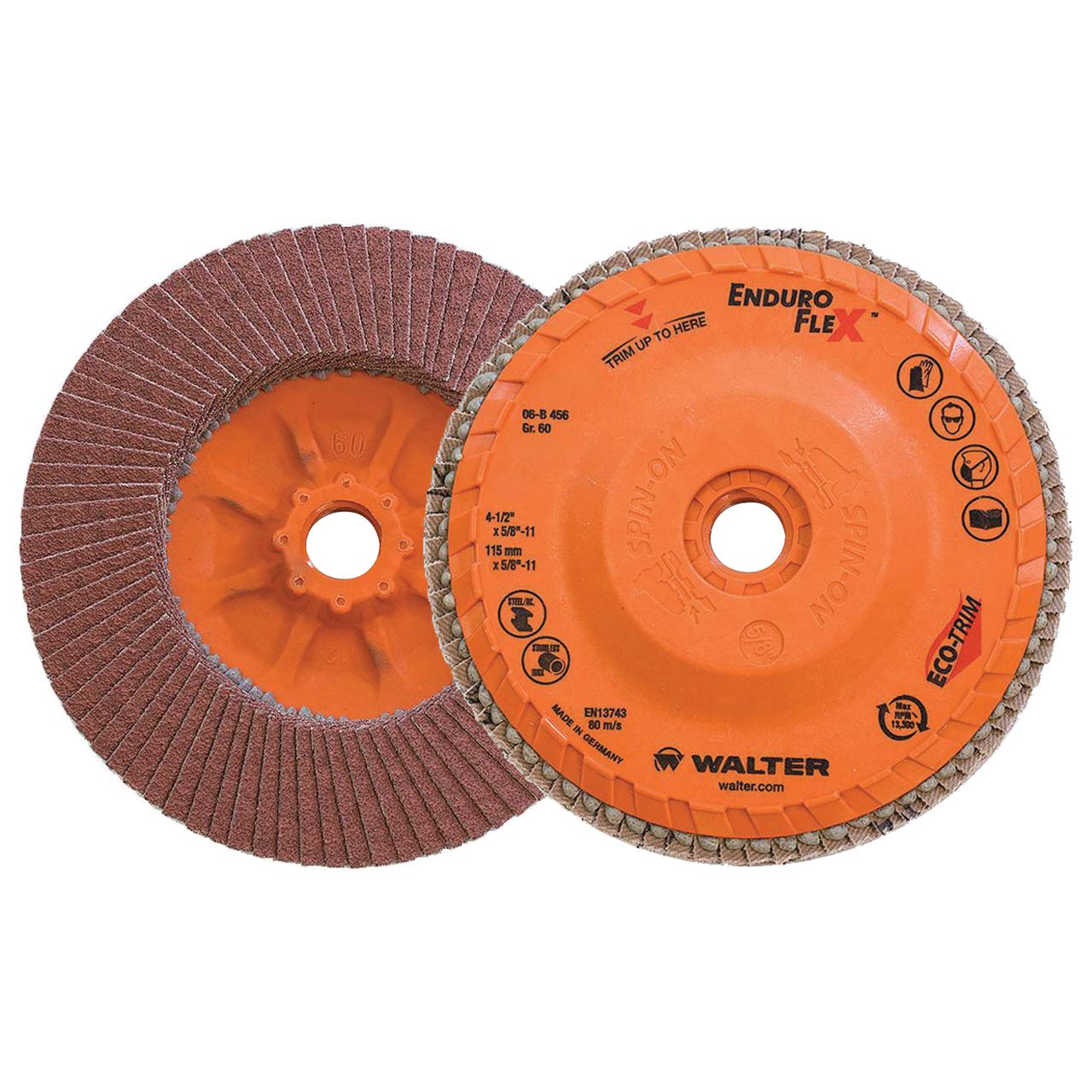 Walter 06A452 4-1/2x5/8-11 Enduro-Flex Turbo Spin-On Discs Fast Grinding Blending Flap Disc Grit 36/60 Type 27S, 10 pack