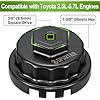 - Perfect Fit: This aluminum cup for toyota oil filter wrench is a perfect removal tool for Lexus, and Scion vehicles equipped with 2.5L to 5.7L engines that use for Toyota's cartridge-style engine oil filter housing, while it does not fit the 1.8L engine or vehicles that use disposable spin-on style oil filters