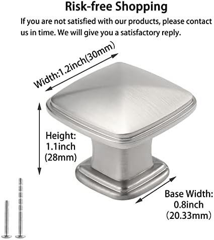 homdiy 30 Pack Cabinet Knobs Brushed Nickel Drawer Knobs Silver Square Kitchen Hardware for Dresser Bathroom Satin Nickel Door Handles for Kitchen Cupboard,Zinc Alloy