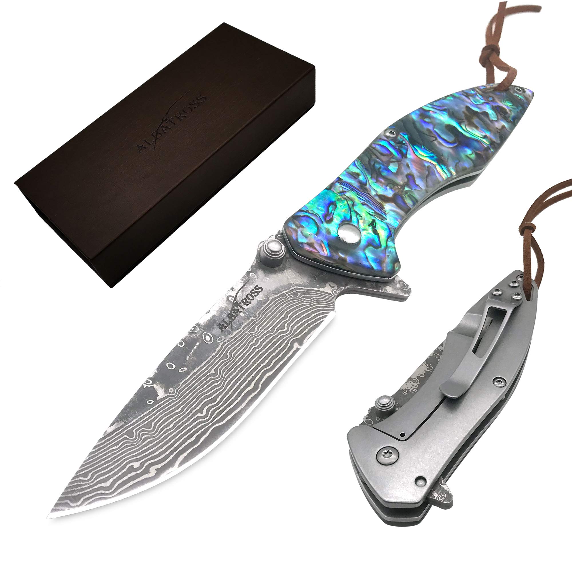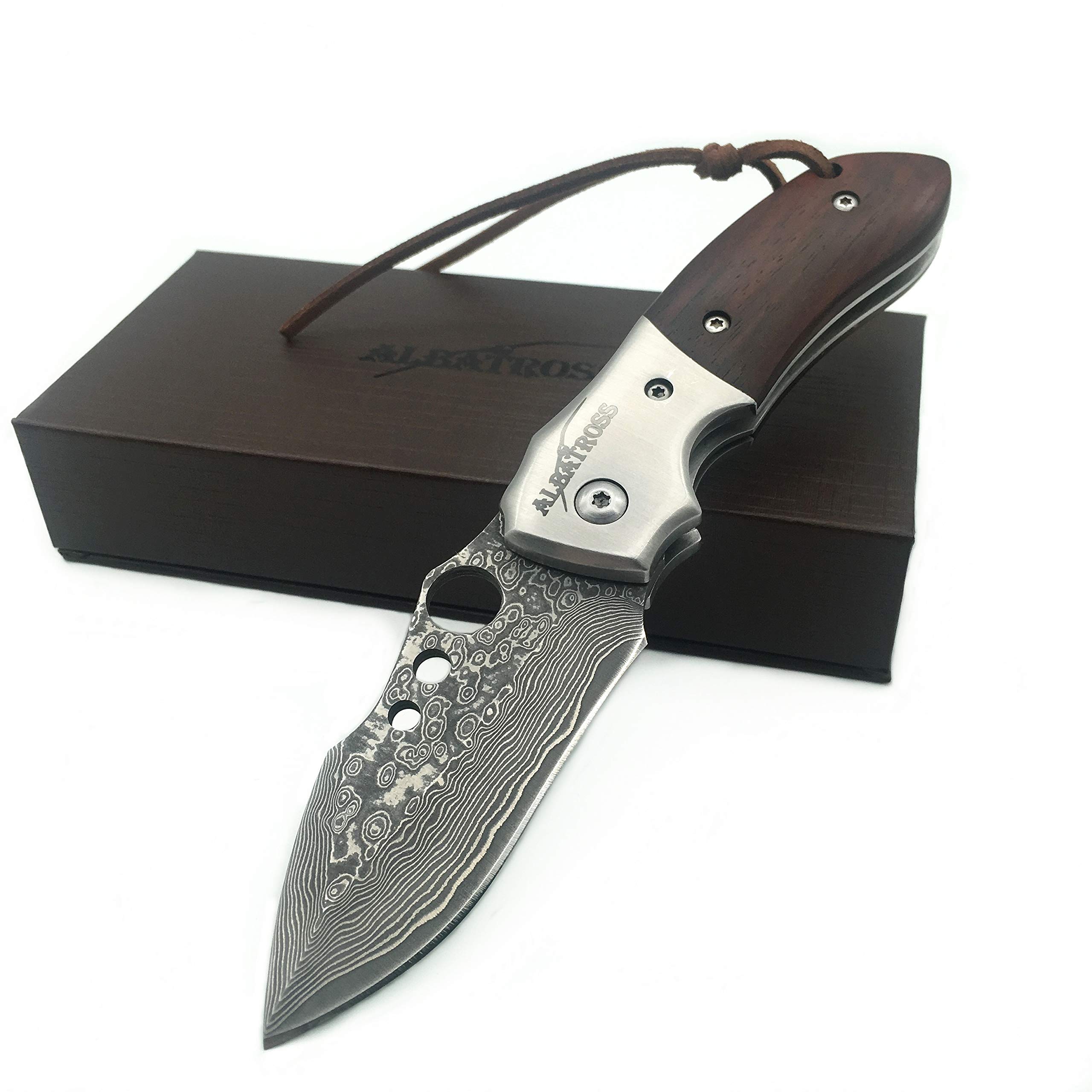 ALBATROSS Premium Tactical EDC Mini Folding Knife - 1.75" Damascus Steel Blade - Compact Everyday Carry Pocket Knife with Black Honeycomb Handle - Gift Box Included - HGDK022-Black