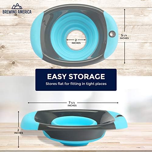 - Easy Storage: Fits in your drawers. Stores flat for fitting in tight places. Hole for hanging from a hook. Your new favorite kitchen funnel takes up less space than big, clumsy metal or plastic funnels. And it is easy to spot with its fun Teal - Aqua color.