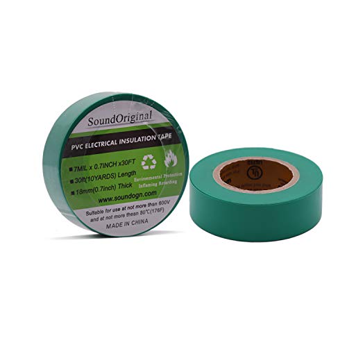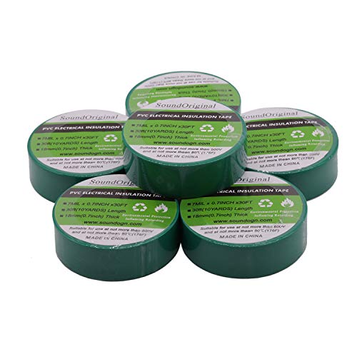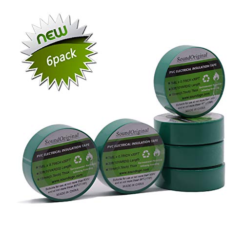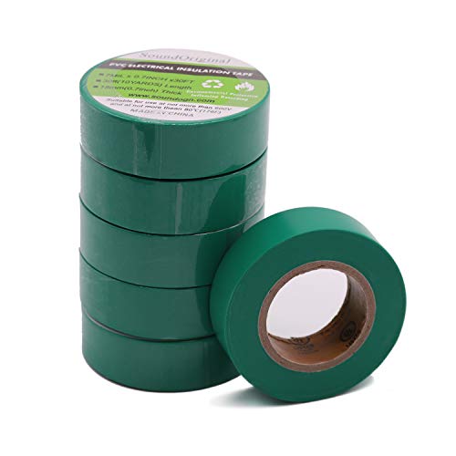 Electrical Tape Green 6 Pack 3/4-Inch by 30 Feet, Voltage Level 600V Dustproof, Adhesive for General Home Vehicle Auto Car Power Circuit Wiring Green
