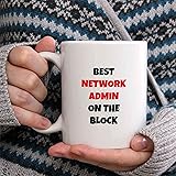 Bouncing Brick Designs Best Network Admin On The Block Coffee Mug - Funny Gift Idea for Family/Friend/Coworker, Ceramic Cup, Birthday/Christmas/Holiday/White Elephant Present, 11 Oz