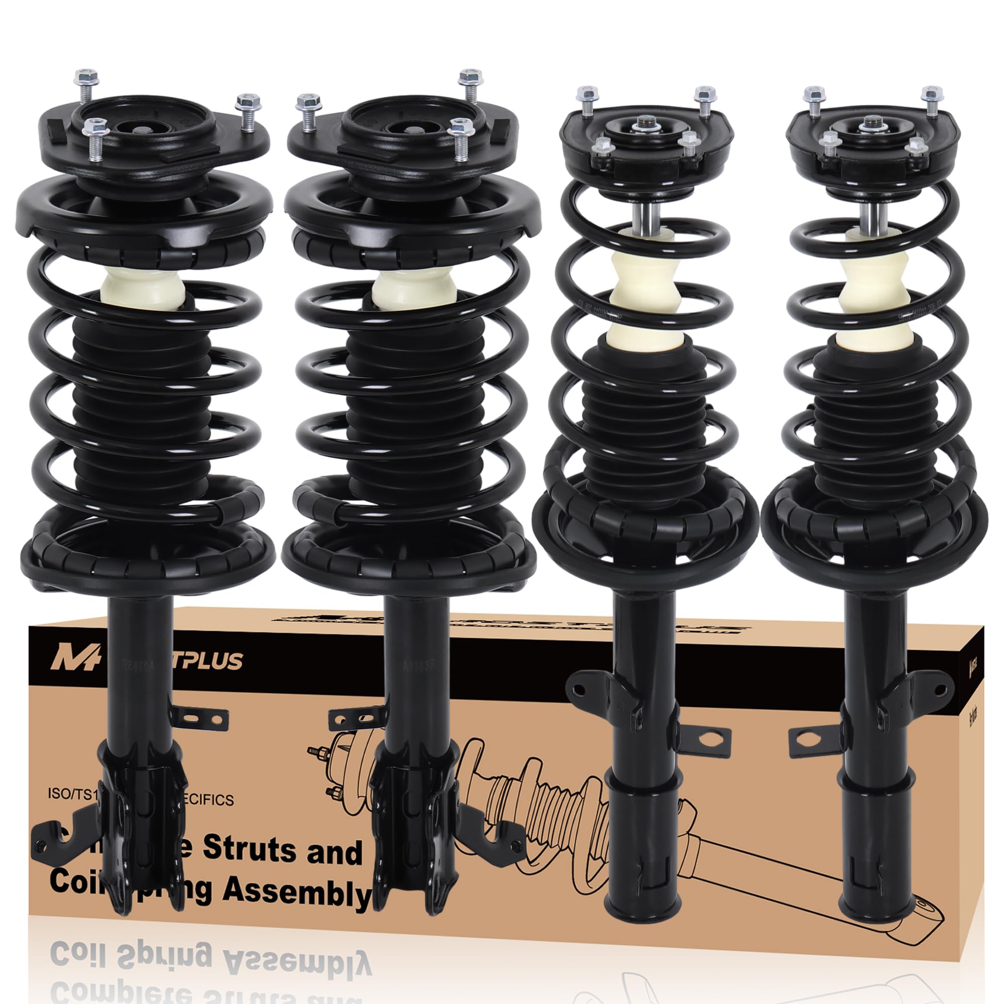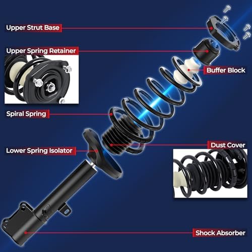 - [Longer-lasting]:Our MOSTPLUS Complete Shock Assembly features high-strength springs, a rust-proof coating, and reinforced welds. Every unit undergoes rigorous inspection to ensure superior craftsmanship, built to withstand extreme temperatures, humid conditions, and road debris. The premium top mount resists cracking and aging, maintaining durability even after years of heavy use—engineered for long-term reliability, so you won’t need frequent replacements.