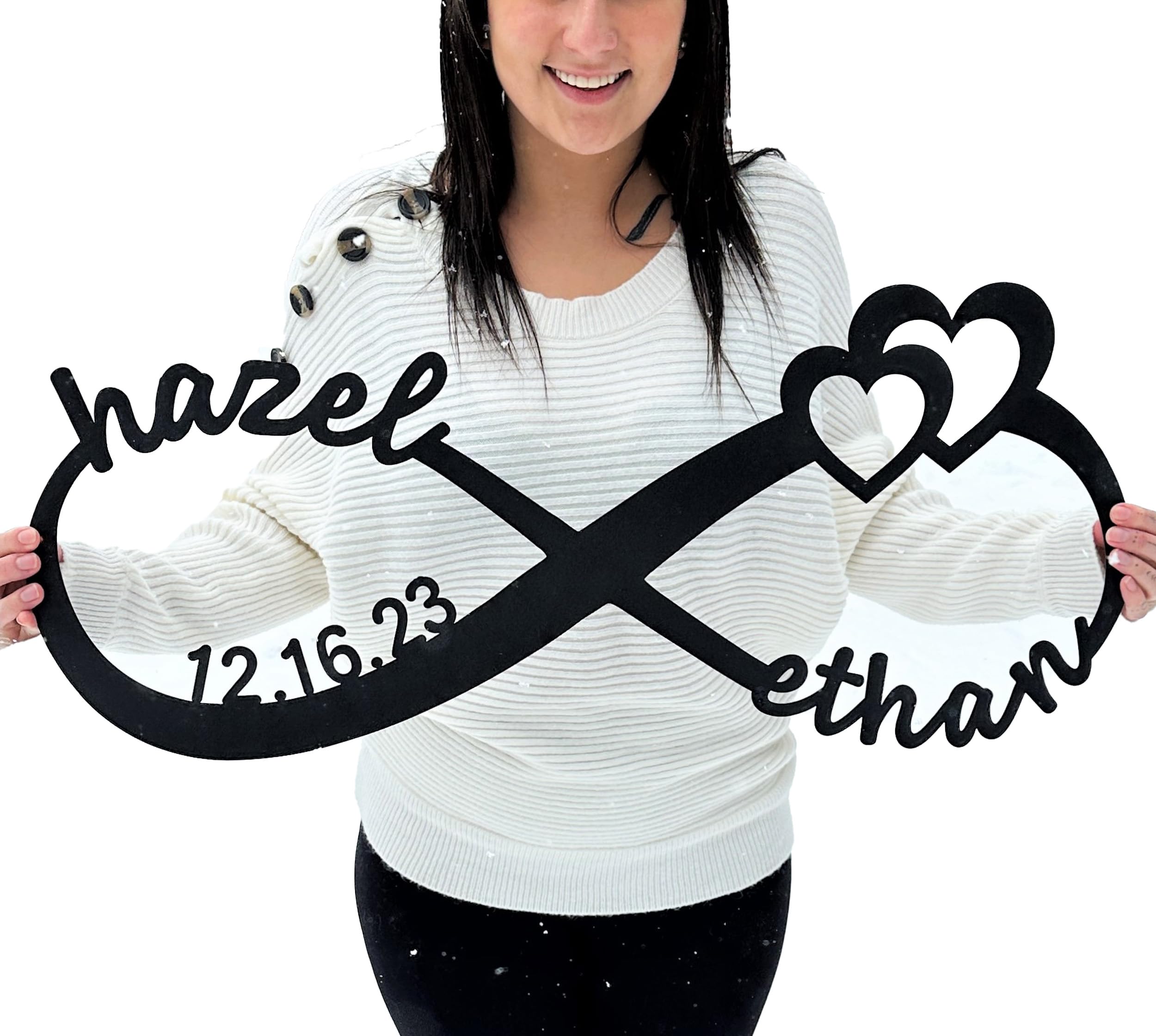 This custom metal sign is precision laser cut from heavy duty, premium quality steel and receives a durable weather resistant powder coated finish. Available in multiple sizes to suit any space, this sign adds a striking personal touch to both indoor and outdoor areas. It’s designed to make an impressive statement wherever you choose to display it. It also makes the perfect gift for weddings, anniversaries, housewarming, or any occasion! Hanging accessories not included. Please message us if you're looking for custom pieces.