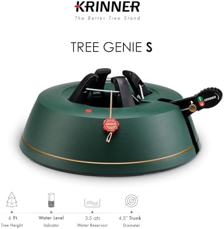 Krinner Christmas Tree Genie Small - Green Tree Stand - Original Single Cable Operation, Holds up to 6 ft Live Trees - Foot Pedal Setup & Water Reservoir with Level Indicator - German Made