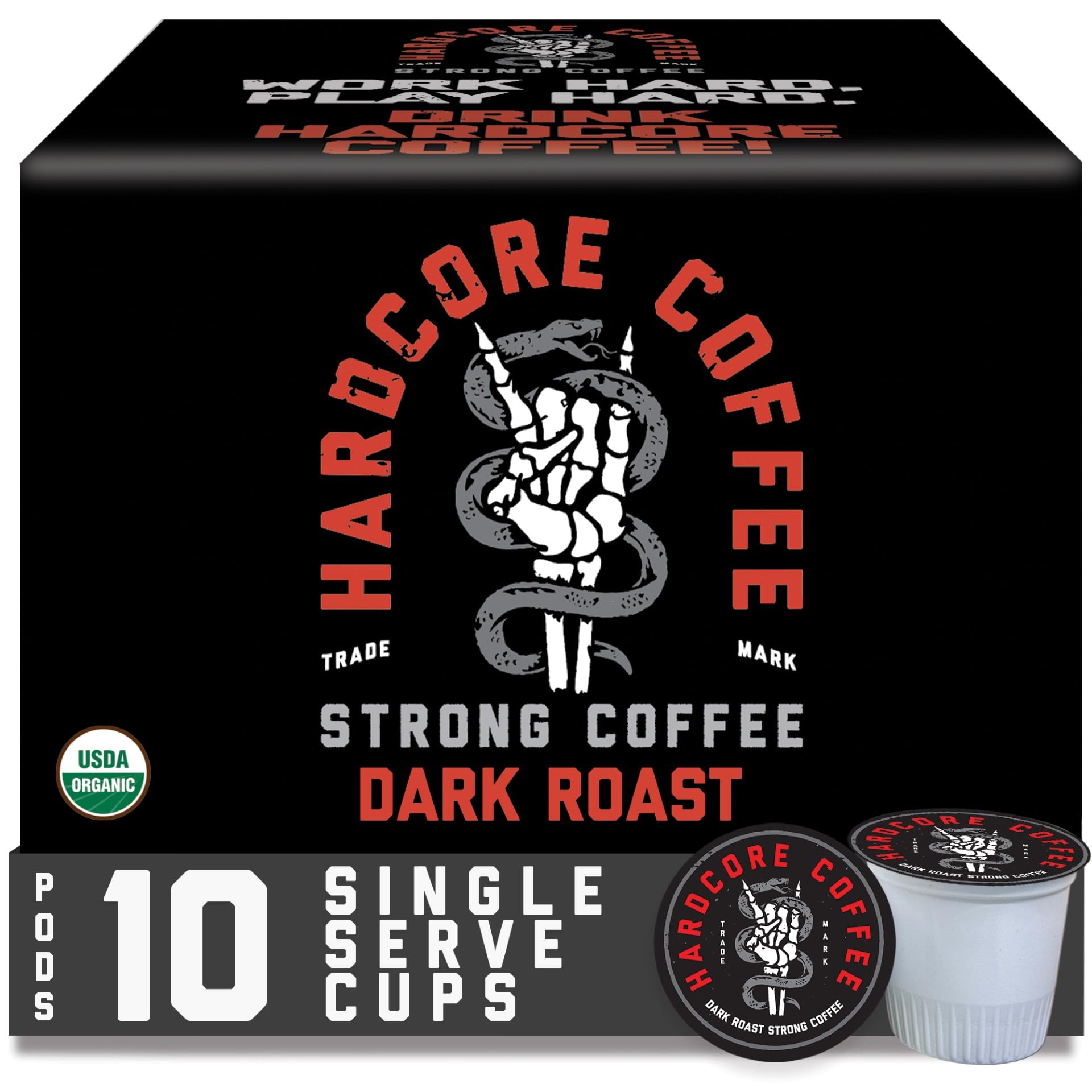 - PREMIUM HIGH CAFFEINE ORGANIC COFFEE: Are you Hardcore? Hardcore coffee is an invigorating blend crafted from meticulously selected coffee beans that have the highest caffeine content in the world. The full bodied brew strikes the perfect balance and delivers the powerful rush of caffeine that gets you pumped.