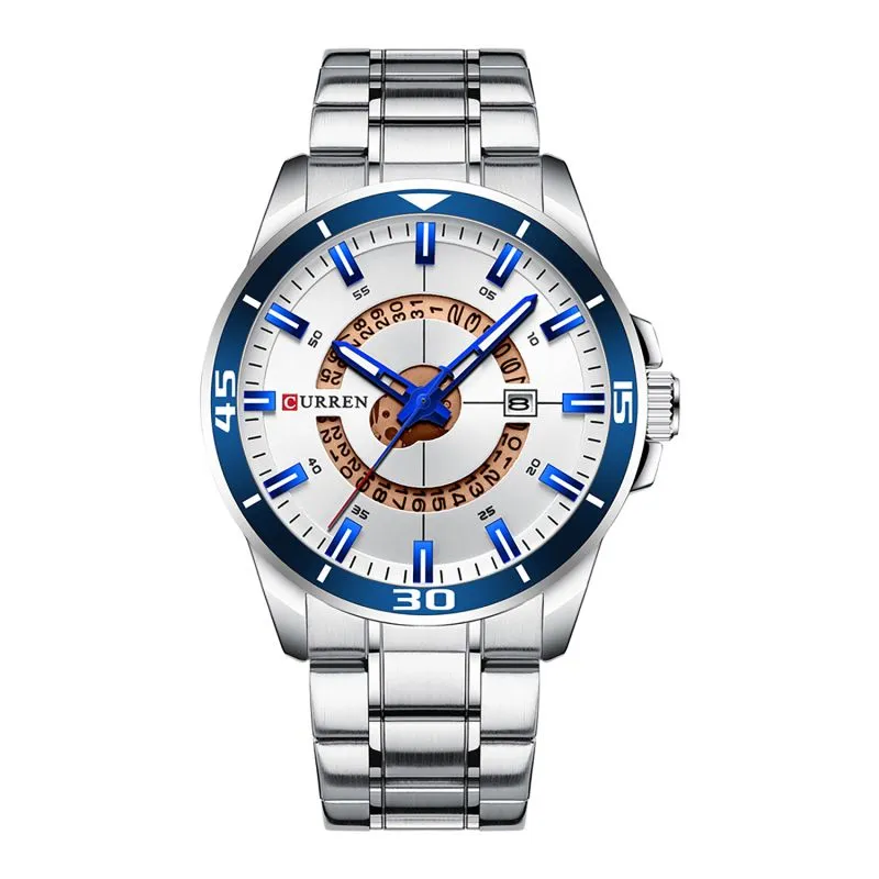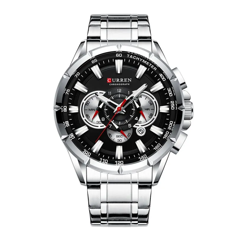 Wrist Watch Men Waterproof Chronograph Military Army Stainless Steel Male Clock Man Sport Watches 8363 (Silver White)