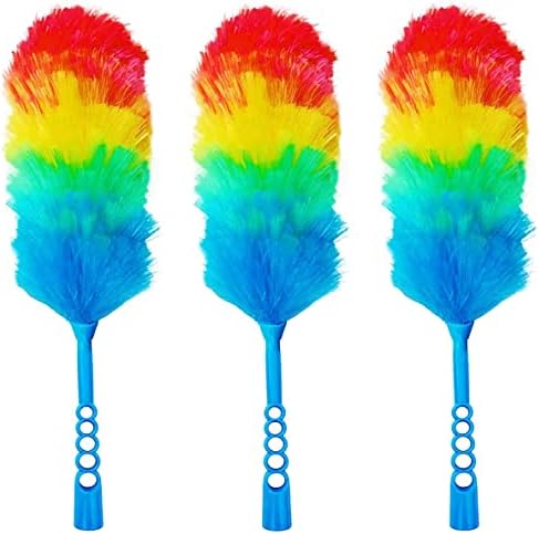3 Pack Upgrade 19” Rainbow Static Feather Duster with Beandable and Washable Head - More Fibers Bigger Head Less Loss of Fiber
