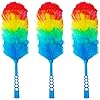 Tockrop 3 Pack Upgrade 19” Rainbow Static Feather Duster with Beandable and Washable Head - More Fibers Bigger Head Less Loss of Fiber