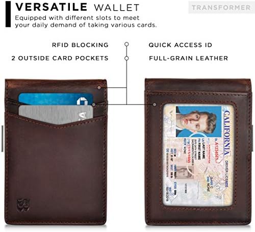 Presentamos la cartera Transformer de Serman Brands. La mezcla perfecta de funcionalidad y estilo. Hecha de cuero de grano completo premium, esta cartera minimalista ofrece amplio almacenamiento sin agregar volumen. Diseñada para el hombre moderno que valora tanto la seguridad como la sofisticación. Características avanzadas Tecnología de bloqueo RFID: Protege tus tarjetas de escaneos no autorizados, asegurando que tu información personal permanezca segura. Amplio almacenamiento Equipada con 11 ranuras para tarjetas, incluyendo dos ranuras exteriores de acceso rápido y una ventana dedicada para ID, acomodando cómodamente de 10 a 12 tarjetas. Clip de dinero integrado: Un clip de acero inoxidable duradero sostiene hasta 15 billetes, manteniendo tu efectivo organizado. Diseño compacto y delgado: Medidas de 4 pulgadas x 3 pulgadas x 0.6 pulgadas, se ajusta perfectamente en bolsillos delanteros o traseros, ideal para aquellos que buscan un perfil elegante. Construcción duradera: Cosido a mano con alta resistencia, asegurando longevidad y resistencia al desgaste. Elegante empaque de regalo Viene en una caja de regalo elegante, convirtiéndola en el regalo perfecto para ocasiones especiales. ¿Por qué elegir Serman Brands? Establecida en 2015, Serman Brands es un negocio familiar dedicado a la elaboración de accesorios de cuero de alta calidad. Nuestras carteras están diseñadas para el individuo moderno, combinando practicidad con estilo atemporal.