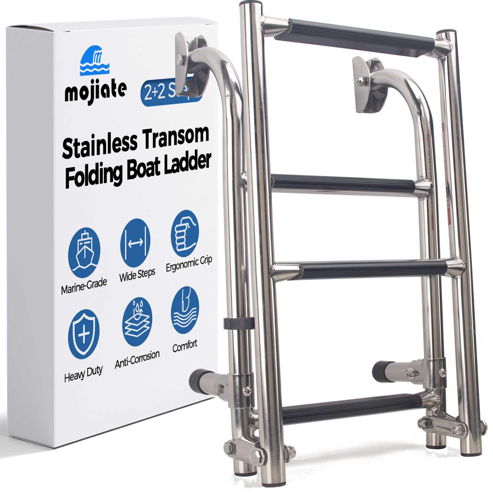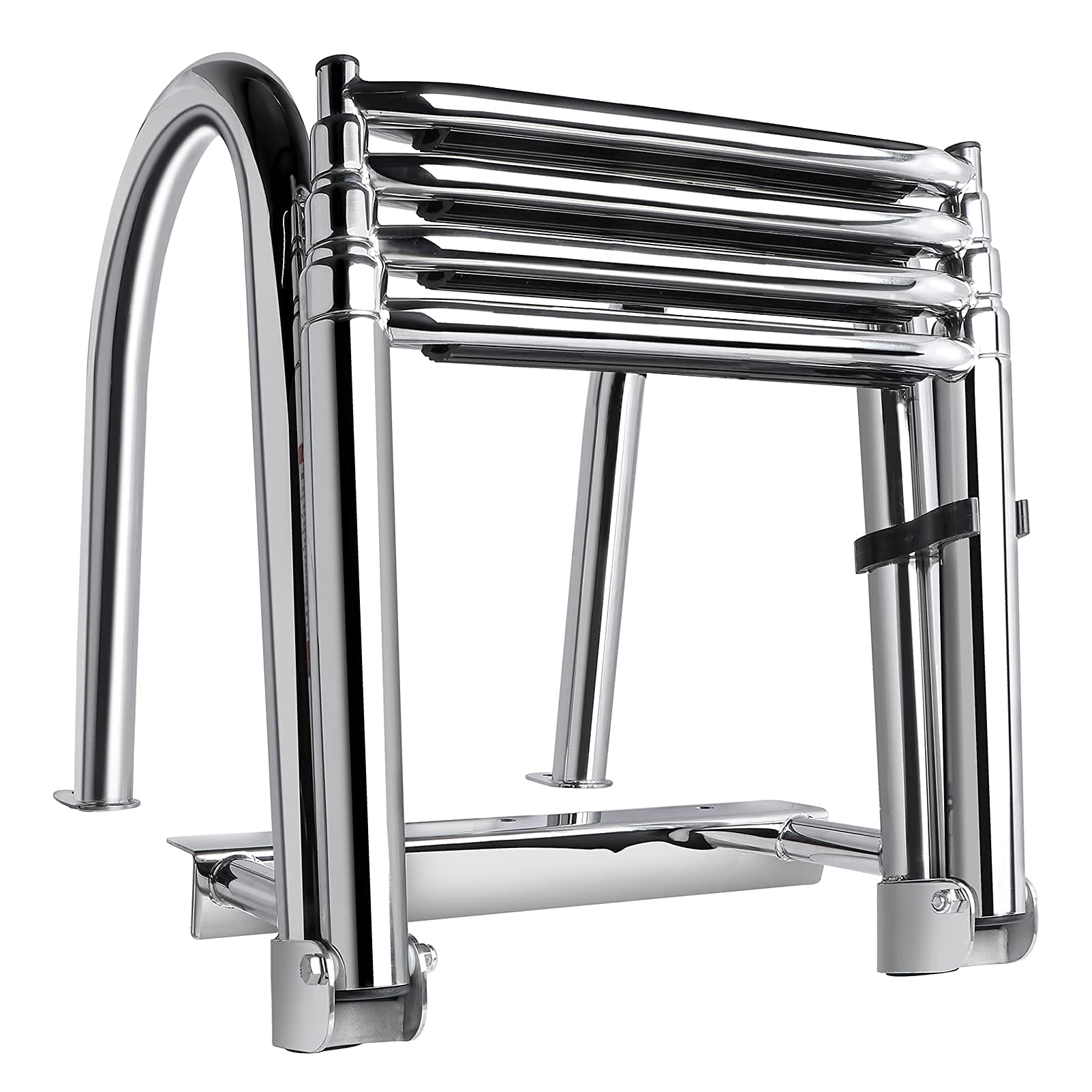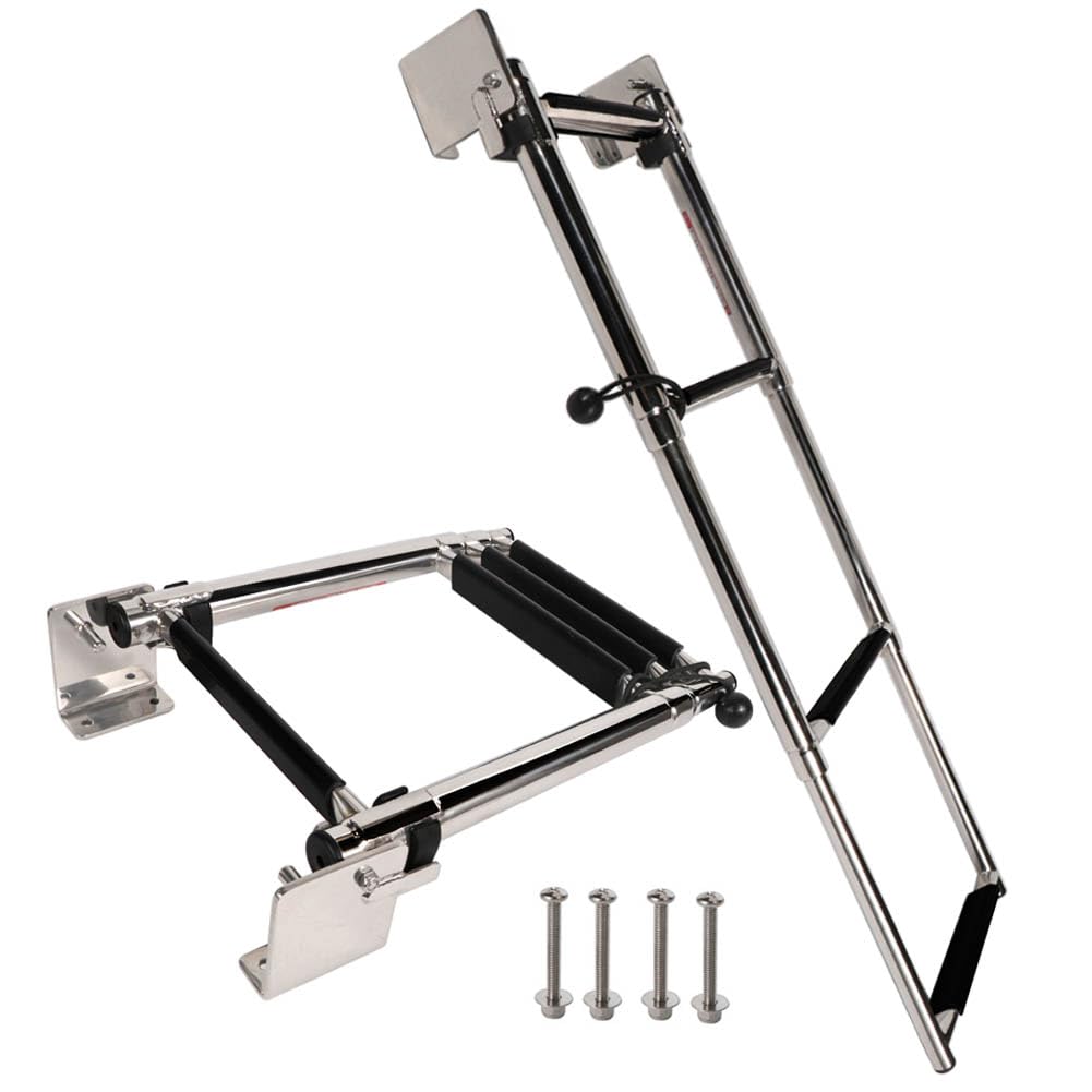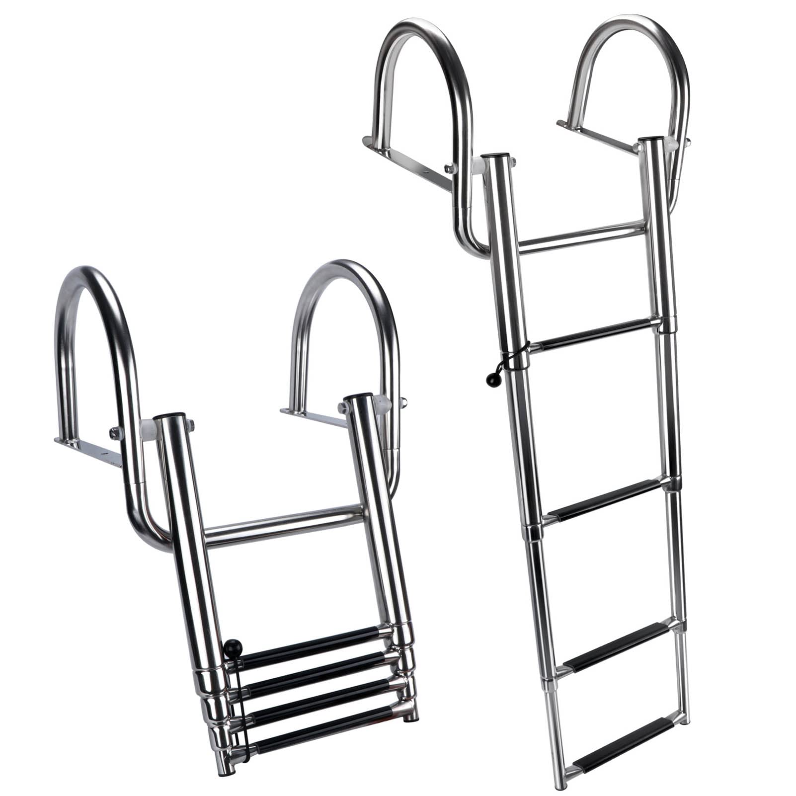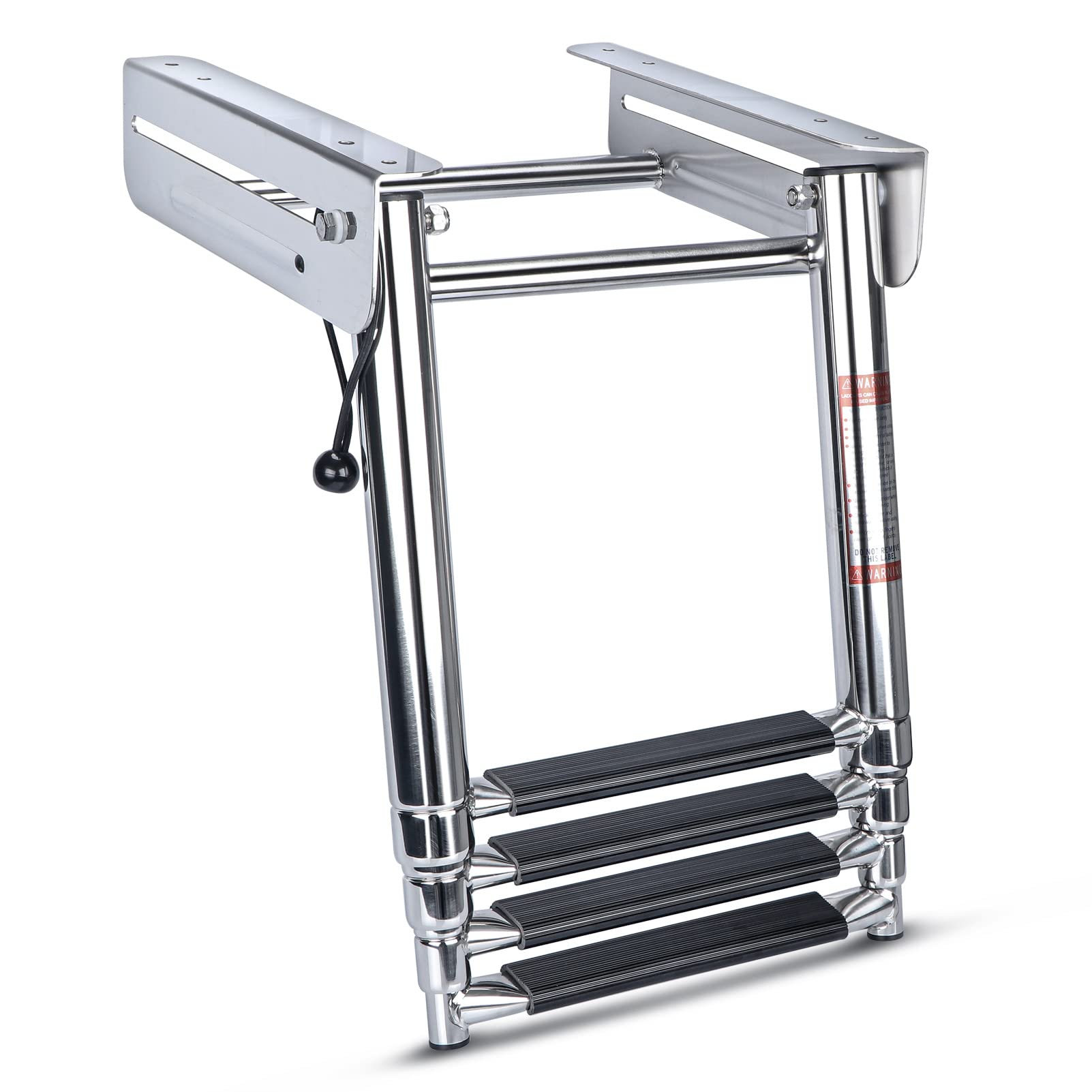 - 【Compact & Convenient】: The telescoping steps on this boat ladder fold quickly and effortlessly into the water for safe boarding. For storage, the low profile stainless steel steps fold compactly and also gives this boarding ladder a very sleek look.
