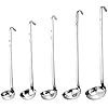 Stainless Steel Hooked Handle Ladle Set - 5 Pcs with Pouring Rim, Long Handle for Kitchen Cooking Soup Sauce (1oz, 2oz, 4oz, 6oz, 8oz)