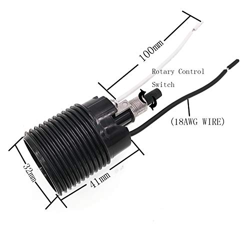 Phenolic (Bakelite) Threaded Medium Base E26 Fixture Socket with 10cm Wire, TWDRTDD US E26 Standard Lamp Holder (with Rotary Switch,Black)