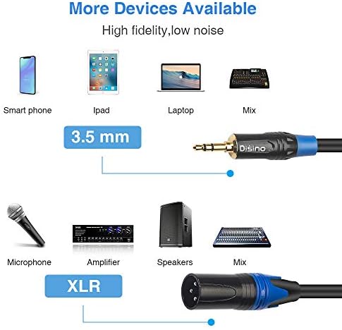 Disino 3.5mm to XLR Cable, Unbalanced 1/8 inch Mini Jack TRS Stereo Male to XLR Male Microphone Audio Cable - 6.6 FT