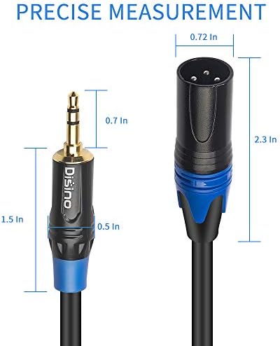 DISINO Unbalanced 3.5mm TRS to XLR cable is an ideal cable for connecting most devices with stereo mini jack output to a mixing console or powered speakers with XLR input. Connect iPhone, iPod, MP3 player, tablet, laptop, or voice recorder to a mixing console or powered speakers(Behringer EUROLIVE or Behringer Xenyx ). 3.5mm stereo jack output to XLR input, It is specifically designed to combine the 2 stereo channels from other device into a mono signal. The step-down design of the 3.5mm connector provides connection to recessed ports.★Premium Material & Quality:- Heavy duty components.- High Grade Oxygen Free Copper (OFC) for effective EMI and RFI rejection and flexibility.- Durable and flexible PVC outer sleeve.- Cotton Yarn Wrap to reduce noise.- Inside aluminum foil shielding layer to reduce interference, for a better fidelity effect.- Gold Plated Reinforced Male Plug Delivers Preimum Quality Sound with Minnimal Interferance.- Step-down design of 3.5mm connector allows for connection to recessed camera mic ports.- Low-Loss 98.5% Copper Braided Spiral-Wound Shield provides maximum cancellation of hum and noise.- 4N Oxygen-free copper conductors are encased in bare copper braid shielding to provide pure sound that is noise free. - Gold-plated provide superior signal transfer and sound reproduction.- Free velcro cable wrap included.★Product Specifications:Connector A : 24K Gold-plated 3.5mm Mini Jack PlugConnector B : XLR Male ConnectorCable Conductors : Bare CopperJacket Material : PVCCable Gauge : 20 AWGCable Body Outside Diameter : 6.0mm / 0.24 inchLength : 2m / 6.6FeetPackage Contents:1 x Unbalanced 3.5mm TRS to XLR Male connector cable1* Free velcro cable wrapNote:This is unbalanced 3.5mm to xlr cable, which combine L/R stereo to mono input, not balanced.Warranty:One Year Warranty and Product Support