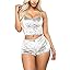 Angsuttc Women's Velvet 2 Piece Outfit Spaghetti Strap Crop Top Shorts Pajamas Set Sleepwear Nightwear