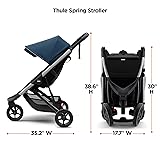 - Meet the world with your child using the Thule Spring - a lightweight and compact stroller made for motion. This 3 wheel stroller allows you to easily navigate narrow urban streets, shop for groceries or meet up with friends. Designed with an easy one-hand fold to quickly close even when carrying a child. Thule Spring is 30% smaller than traditional 3 wheel strollers, and it's unique 3D compact fold and self-standing capability make it easy to carry, transport and store when not in use. This single stroller comes with all of the safety feature you expect from Thule. The reclining seat with a 5-point harness provides safety and comfort for strolling and napping on the go. No puncture, foam filled tires provide a smooth ride on any terrain. The swiveling front wheel with suspension can be locked into a fixed position for a comfortable ride anywhere. The vented canopy is fully adjustable and extends for low sun coverage, while also providing UPF 50+ UV protection for your little one. The sliding handlebar adjusts with one hand for ultimate comfort. Finally, the Thule Spring is compliant with Walt Disney Theme park regulations, making it the perfect travel stroller for any family vacation.