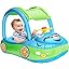 iGeeKid Inflatable Baby Pool Float with Canopy, Safty Seat for Infant Baby Swim Float Rings Car Shaped Swimming Pool Floaties for Babies Toddler Age of 6-36 Months (Blue)