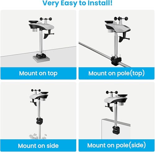 - 【S𝗶𝗺𝗽𝗹𝗲 I𝗻𝘀𝘁a𝗹𝗹a𝘁𝗶𝗼𝗻 & S𝗲𝘁𝘂𝗽】Installation is a breeze—simply mount the outdoor sensor on your backyard fence, cabin roof, or pier pillars using the bracket, and sync it wirelessly to the display. Perfect for DIY enthusiasts and non-tech users alike, with no complicated setup required.