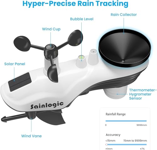 - 【P𝗿𝗲𝗰𝗶𝘀𝗶𝗼𝗻 Ra𝗶𝗻𝗳a𝗹𝗹 M𝗼𝗻𝗶𝘁𝗼𝗿】Our professional-grade rain gauge achieves ±1mm accuracy for rainfall <15mm and ±7% accuracy across its full 15-9999mm measurement range. Records rainfall data every hour, day, week, month and total, delivering reliable hydrometeorological data collection for critical weather monitoring and environmental research applications.