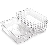 Storage Made Simple: Our versatile, stackable storage bins are a kitchen essential for any home organization. Use our clear storage bins in the pantry or refrigerator to organize your food items or as a bathroom organizer to store toiletries neatly. These bins have an innovative design that allows you to stack them up to save on space while providing easy access to your items. They’re also great for storing craft materials, toys, and more. Expertly Designed: All of our large, clear storage bins are expertly crafted for functionality and convenience. THE STACKER COLLECTION features BPA-free plastic organizer bins with built-in, easy-grip side handles for easy lifting, sliding, and transportation. Our stackable, clear containers for organizing living spaces are see-through, making it easy to find or locate what you need without opening the container. Multipurpose Bins: Save space anywhere and let our stackable clear plastic storage bins do the work for you. They are versatile enough to use for various needs. Use our plastic organizer bins to organize yogurt cups, canned goods, food packets, cheese, meat, drink boxes, baby food packs, juice packs, boxed foods, fresh produce, and more! THE STACKER COLLECTION can be worthwhile to use in apartments, condos, dorm rooms, RVs, and campers. Shatter-resistant: Our stackable plastic organizer bins are made of shatterproof material, which protects your kitchen goods and home essentials against damage in case it falls. THE STACKER COLLECTION makes a great gift for different occasions such as Thanksgiving, housewarming events, weddings, Christmas, or just a casual present you want to share with your family and loved ones. Useful for Small-spaced Homes: When a refrigerator and pantry do not have enough storage space, our stackable plastic bins offer a practical solution. These storage organizer bins are a smart and stylish way to organize small spaces in homes, and they won't take up too much space. Our X-Large, clear storage bins are thoughtfully sized to accommodate various items and measure 14.5"x 8.25"x 4".