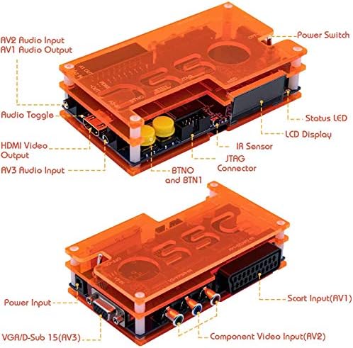 Descripciones: Juega tus juegos retro favoritos usando este adaptador conectando tu consola a una de las entradas del OSSC. El adaptador convertirá la señal a HDMI para conectarse a un televisor moderno sin retraso de entrada. Para la v1.6, no solo convierte VGA, SCART y Componente a DVI/HDMI, sino también audio analógico a digital DVI/HDMI ¡ahora! El OSSC cuenta con múltiples opciones y modos para ajustar la imagen hasta que estés satisfecho - ¡Una variedad de plantillas para obtener la mejor imagen para cada consola están ampliamente disponibles en línea! Entrada: 1 X SCART – Soporta RGBs (clean csync, cvideo sync, luma sync), RGsB, Ypbpr 1 X Video Componente – Soporta señales Ypbpr y RGsB 1 X D-SUB15 (VGA) – Soporta RGBHV, RGBs, RGsB, Ypbpr 2 x 3.5mm audio analógico – Soporta todo el audio analógico. La entrada 1 puede alternarse entre salida (desde AV1/SCART) o entrada Composite video y S-Video NO son soportados y requieren un adaptador/transcodificador (NO incluido) Salida: 1 X HDMI o DVI-D (con adaptador) (solo digital, audio incluido). Salida RGB de 24 bits completa a través de DVI/HDMI 1 X Audio analógico 3.5mm (alternancia de entrada/salida) Resoluciones de entrada soportadas: 240p/288p/480i/576i 15khz 25Khz modos de resolución media 480p/576p/720p/1080i 31khz Resoluciones de salida soportadas: 240p/288p -> 480p/576p o 720p línea triple (solo pantallas compatibles) 240p/288p -> 1280×960, 1280×1152, 1080p, 1600×1200 línea cuádruple/quintupla (solo pantallas compatibles) 25Khz modos de resolución media -> 480p 480i/576i -> 480p/576p o paso directo 480p -> paso directo o 960p línea doble (solo pantallas compatibles) todas las demás resoluciones de 31khz pasan a través Otras características: LCD retroiluminado, ranura para tarjeta SD para actualizaciones de firmware, conector JTAG, receptor IR Requisitos de alimentación: DC 5V 1 Amp – 2.1 x 5.5mm punta positiva