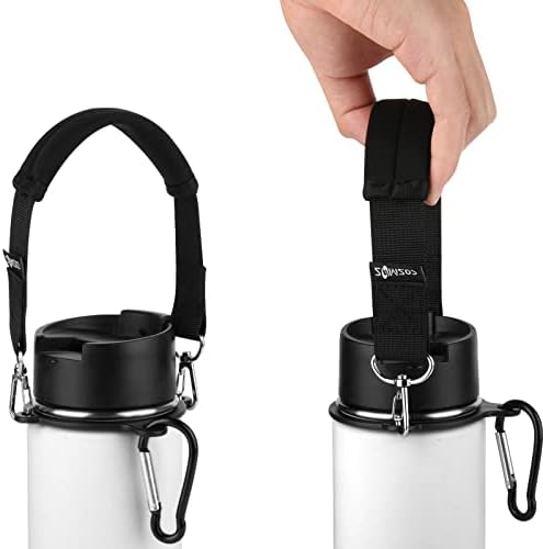 CM Water Bottle Handle Strap Carrier Handle Neoprene Holder Strap with Carabiner for Wide Mouth Bottles, Fits 12 oz to 64 oz Bottle, Black Color
