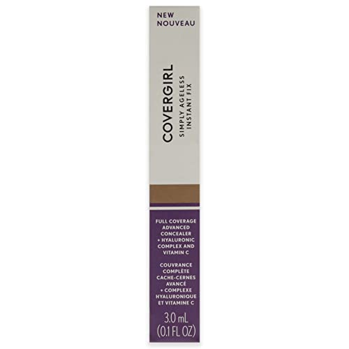 Put your freshest face forward with Covergirl Simply ageless instant Fix advanced concealer. This full coverage concealer instantly improves the look of skin by hiding dark circles and smoothing fine lines. Skin looks healthier and more hydrated thanks to the formula with hyaluronic complex and Vitamin C, and the soft tip applicator Helps blend for flawless coverage. Pro-tip: pair with Covergirl Simply ageless 3-in-1 foundation to create a timeless makeup look with nourishing skin care benefits.