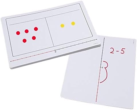 Hands-on write-on/wipe-off mats for visualizing operations with positive and negative numbers. Students model integer problems using red and yellow counters or writing on the mat. Use the space at the top to write the equation, and record the operations on the number line at the bottom. On the reverse, use the vertical number line to show negative and positive numbers. Set includes 10 write-on/wipe-off mats and full-color activity guide. Mats measure 10 inches x 13 inches.