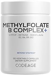 MTHF Supplement: Methylfolate B Complex offers an all-in-one methylation supplement with folate, methylated vitamins, riboflavin, and betaine in an easy to use capsule format. Folate & Riboflavin: 1360 mcg of 5- MTHF folate with Quatrefolic 5 methylfolate and glucosamine salt as a folate supplement. This methylation formula also contains 30 mg of Riboflavin 5’- Phosphate as a riboflavin supplement. Betaine: The blend features 600 mg of betaine as trimethylglycine (TMG). Methylated Vitamins: Codeage Methylfolate B Complex can provide an active, methylated forms of folate and vitamins B2, B6, B12 (5-MTHF and methylcobalamin B12). The vitamins included in this formula (vitamin B6 and vitamin B12 1000 mcg) are also provided in their phosphorylated forms.* 2-Month Supply - Manufactured in USA: Codeage Methylfolate B Complex supplement is vegan, and non-GMO. This formula is also gluten, dairy, and soy free. Codeage methylated vitamins capsules are manufactured in the USA with global ingredients in an cGMP-certified facility and third party tested. 2 months supply.