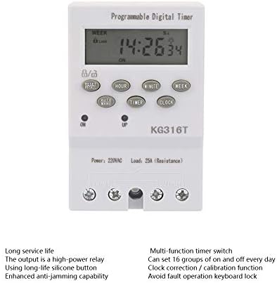 Programmable Timer Switch, KG316T 220V Precise Microcomputer Control Digital Timer Switch, Indoor Automatic Wall Light Switch with Timer, for Lights Bathroom Fans, Motors