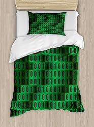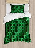 Ambesonne Programmer Duvet Cover Set, Computer Data Bits Process Themed Greenish Binary Programming Code Printing, Decorative 2 Piece Bedding Set with 1 Pillow Sham, Twin Size, Green Emerald
