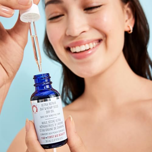 First Aid Beauty Ultra Repair Oat & Hemp Seed Oil – Hydrating, Non-Greasy Facial Oil with Arnica & Colloidal Oatmeal for Redness Relief – Calms Dry, Distressed Skin – Fragrance Free, 1 oz