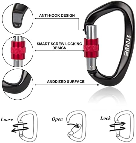 - UIAA CERTIFIED HEAVY DUTY: STURME heavy duty screwgate locking carabiner has UIAA Certification (Certification No. CHN 19-5541) with super strength and safety. It can hold up through a full lead climbing fall, suitable for mountaineers, rock climbers etc