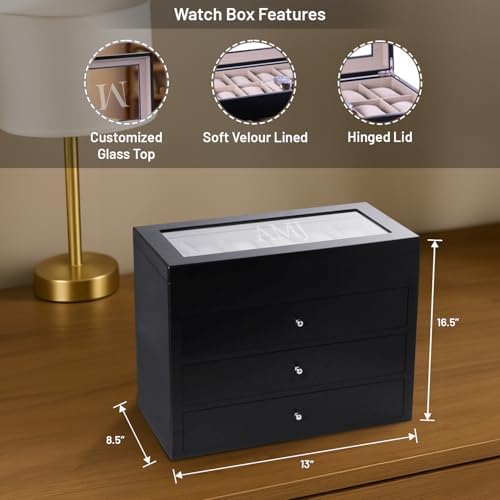 Bey-Berk Custom Personalized Watch Box Organizer - 48 Slot Luxury Solid Wood Designer Display, Large Watch Slots