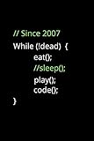 Since 2007 While !Dead Eat Sleep Play Code: Lined Notebook / Journal Gift, 120 Pages, 6x9, Soft Black Cover, Matte Finish