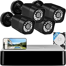 - SISTEMA DE SEGURIDAD INLÁMBRICO: El kit de vigilancia día y noche NVR viene con 4 piezas de cámaras inalámbricas Full HD 2MP 1080P a prueba de agua IP66, NVR 1080P con 1TB de disco duro preinstalado. Está equipado con múltiples funciones como visión nocturna (hasta 20 metros), transmisión en vivo, monitoreo remoto y alertas de detección de movimiento.